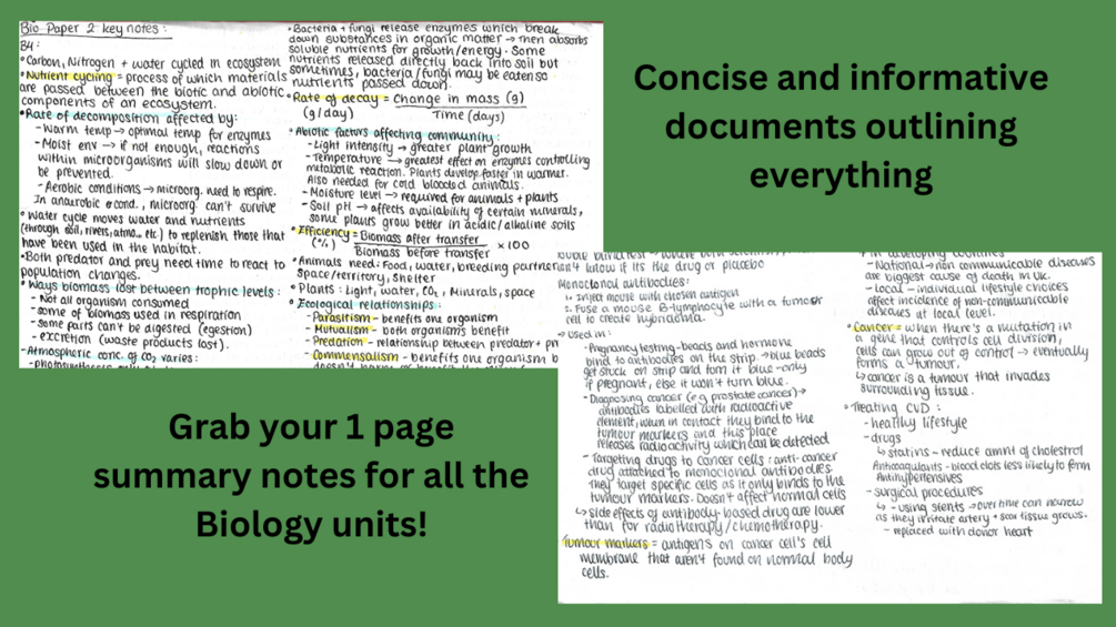 You'll get summary notes for all the topics in Biology (B1-B6) for your exams!!
